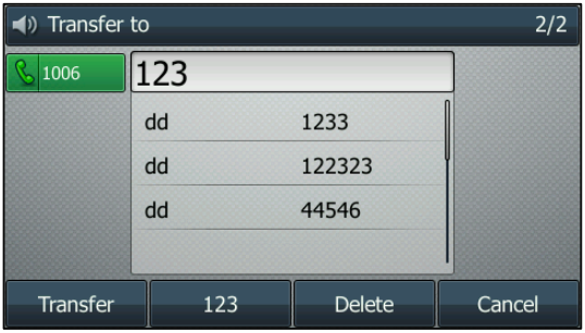 - Press one of the transfer displayed above, Transfer or the Transfer soft key to complete the transfer.