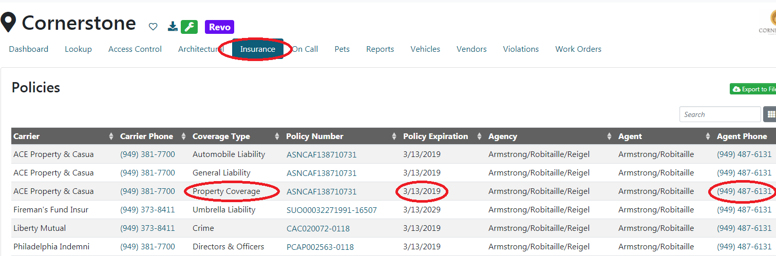IMPORTANT: Also, be certain that you are giving the insurance broker’s number, not the phone number for the insurance company – see screen shot below). The agent will provide the document The agent’s contact information is located in Management App. Check the expiration date. If Management App has not been updated, you check with the manager and also ask the manager to have their Assistant update Jenark.